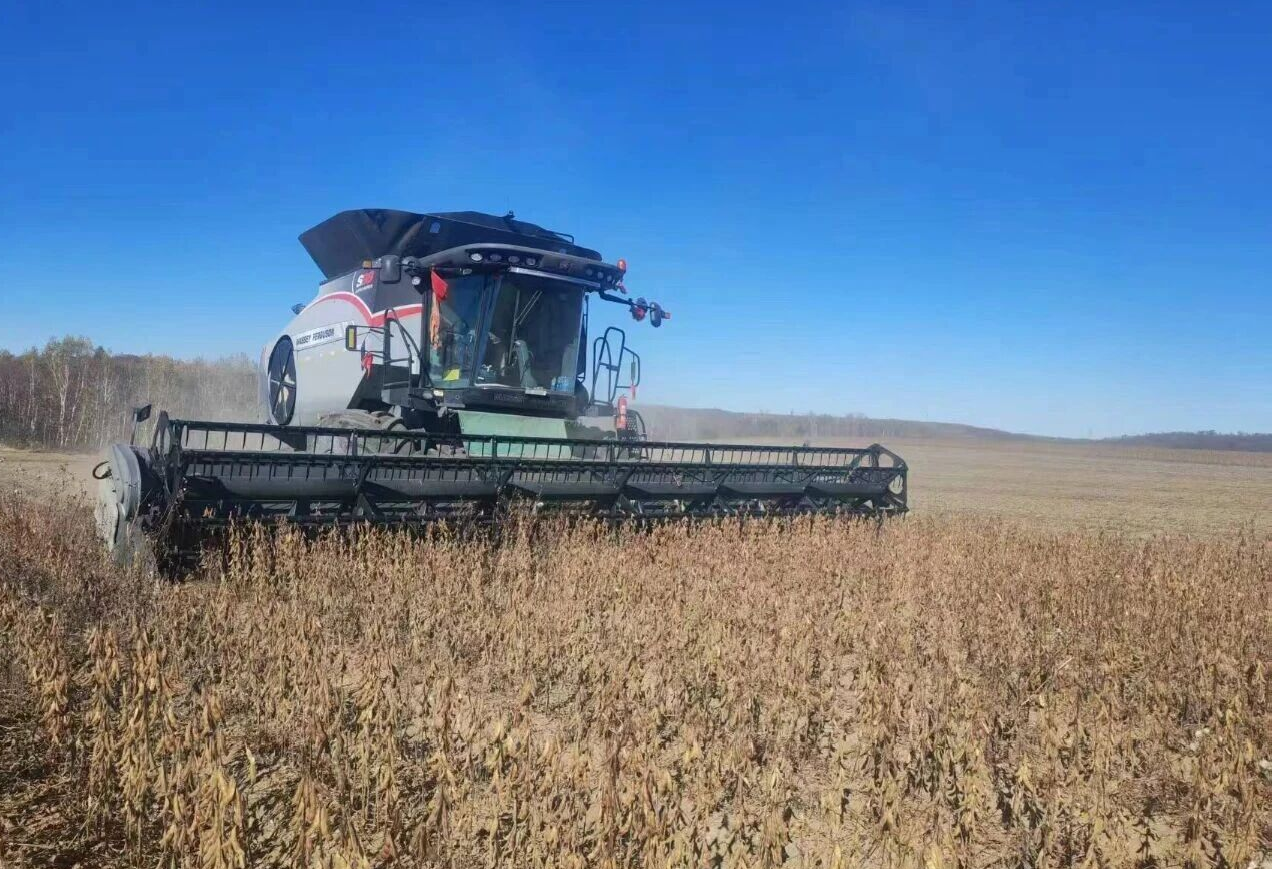 科学统筹,秋收作业高质高效推进。为确保秋收工作有序开展,呼玛县提前谋划、精准施策。一方面,制定秋收计划图与时间表,严格按照“五先五后”原则推进收获作业,同步印发《呼玛县2025年粮食机收减损实施方案》,以科学指导降低田间损耗。截至9月29日,全县已收获粮食作物5.6万亩,占应收面积的5.1%,其中小麦4.385万亩已完成全部收获,杂粮杂豆、薯类收获0.42万亩,大豆收获0.8万亩。另一方面,气象条件为秋收提供有力支撑。今年春夏季降雨偏多,土壤湿度保持正常;8月下旬、9月上旬气温分别较历年同期偏高0.4℃、1.0℃,利于大豆鼓粒与成熟,且5月22日至9月17日大于等于10度活动积温达2207.5℃。