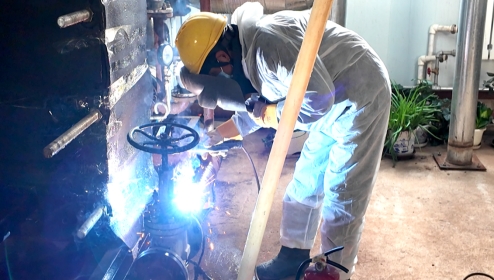 在演练现场,巡检人员发现供热管道破裂险情后,立即按照应急报告程序向上级汇报。应急指挥部迅速启动应急预案,各应急小组在最短时间内集结到位。抢险救援组发现一段主管道突然发生爆裂,高温热水急速喷溅,抢修人员冒着可能被烫伤的风险立即上前关闭闸门,焊工师傅身着阻燃防护服,在管道上精准定位裂口,手持小型焊机立即对破裂管道进行焊接抢修,焊接点的光芒有节奏地明灭,整个流程紧张有序,展现了专业的处理技能。其他各小组严阵以待,随时防止突发情况的出现。经过十分钟的紧张抢修,破损管道焊接修补完成,阀门重新开启后,供热管网恢复正常循环。