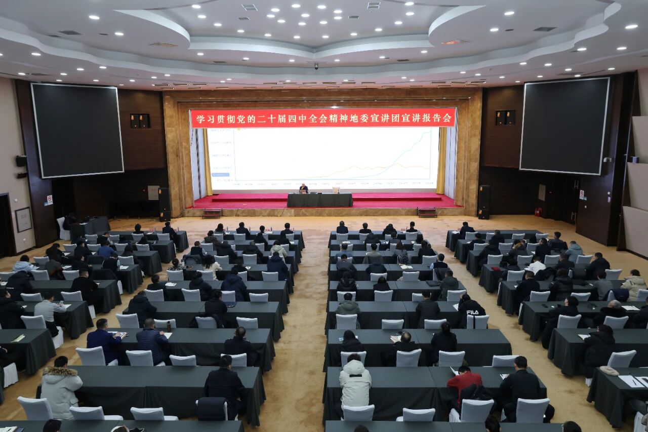 12月18日,学习贯彻党的二十届四中全会精神地委宣讲团宣讲报告会在漠河市举行。地委宣讲团成员、地委党校经济学教研室副主任、经济学副教授李靖宇作宣讲报告。