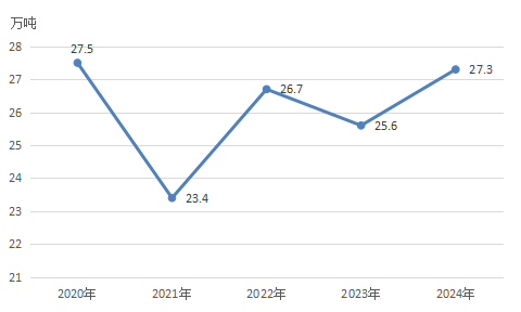 图3 2020—2024年全区粮食产量