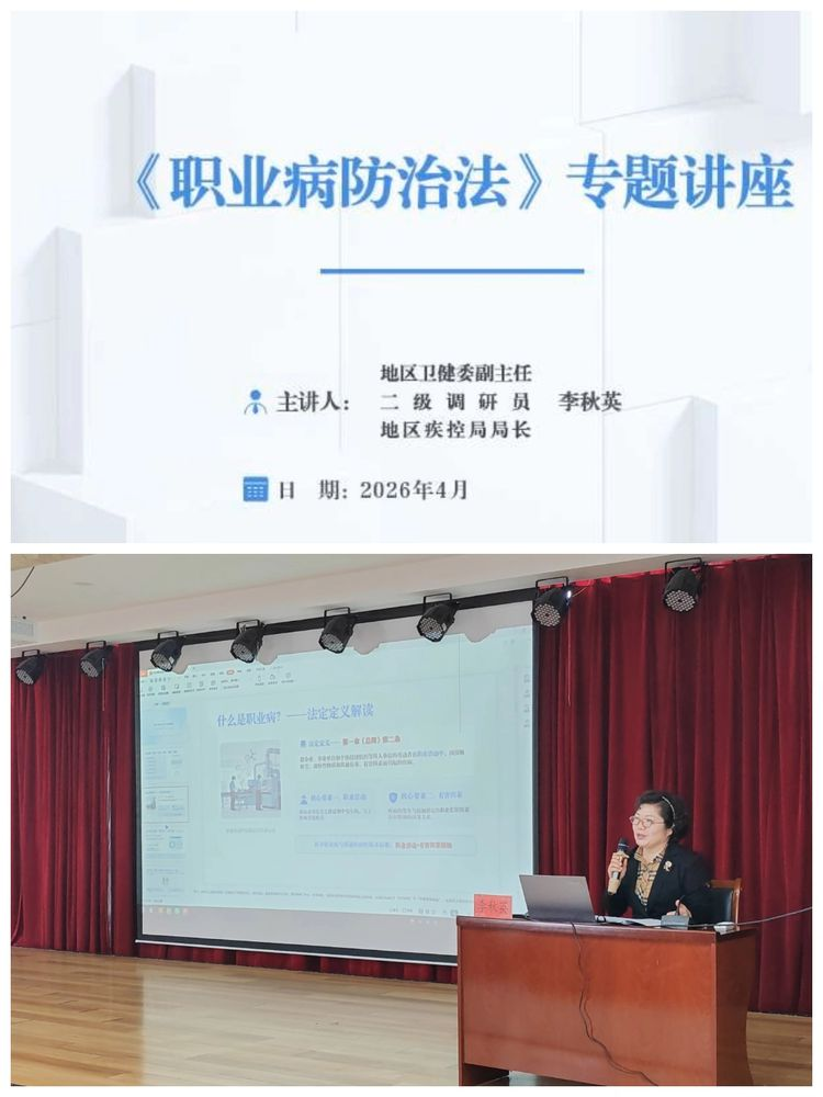 一是法治宣讲明责任,由地区卫生健康委副主任、二级调研员、疾控局局长李秋英现场解读《中华人民共和国职业病防治法》核心内容,重点明确企业职业病防治主体责任,引导企业规范落实各项防治措施,指导职工依法维护自身职业健康权益,进一步提升全社会职业健康法治素养。
