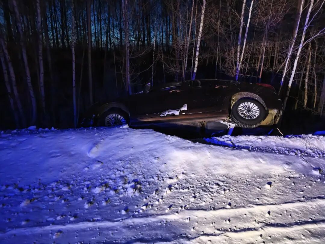 3月7日晚,图强森林分局交管大队接到指挥中心指令,称在三零干线20.5公里处有车辆滑下路基,群众被困,情况危急。接到指令后,值班民警立即驾驶警车赶往现场。