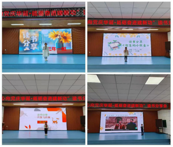音像馆里,读书分享会热烈进行。同学们带来爱国故事、中秋传说,有的讲述革命先烈事迹,有的吟诵传统诗词。大家认真聆听,积极交流,在书香中感受家国情怀与传统文化的魅力。展厅内的国庆主题插画展区,同学们围绕"家国同庆"主题,绘制了多幅色彩鲜明的作品。画面中,太阳、古建筑、飘扬的国旗与腾飞的火箭等元素相互呼应,传递出对祖国发展的自豪。作品上方悬挂着"月满山河家国同庆"的红色横幅,让整个展区充满喜庆感。