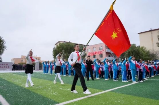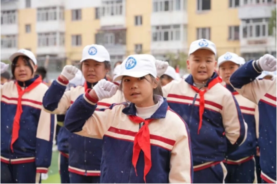 纷飞的雪花映衬着鲜艳的队旗,激昂的队歌回荡在校园上空。日前,加格达奇区育才小学的操场化作红色海洋,“强国复兴有我争当新时代好少年”主题队日活动在此举行,共同庆祝中国少年先锋队建队76周年。
