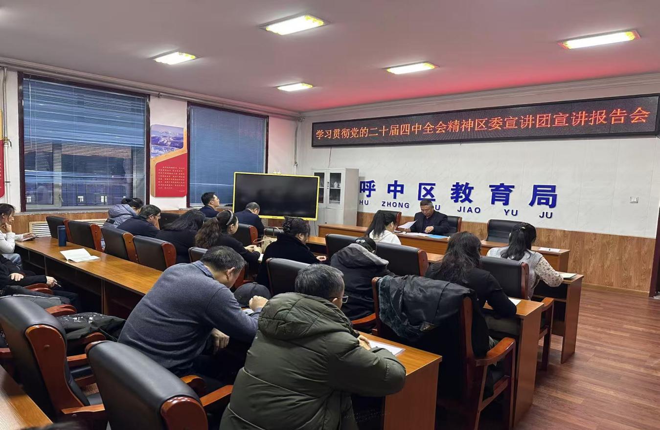 近日,呼中区教育局召开了党的二十届四中全会精神专题宣讲会,全局干部职工、全区各中小学校(幼儿园)负责人及骨干教师代表参会。会议深入解读全会精神核心要义,结合我区教育实际部署贯彻落实举措,推动全会精神在教育系统落地生根。