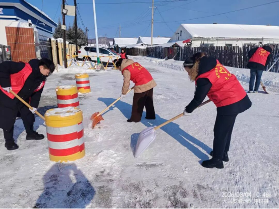 随后,志愿者们迅速投身校园及周边积雪清扫行动。初春降雪导致校园路面湿滑,给师生出行带来安全隐患。大家手持铁锹、扫帚、推雪板,分工协作、默契配合,有的铲冰除雪、有的清扫归堆、有的清运积雪。尽管天气寒冷、路面湿滑,志愿者们不畏严寒、干劲十足,红色志愿马甲成为校园里最亮眼的风景。经过集中奋战,校园主干道、校门口及周边路段积雪全面清理,道路整洁畅通,切实保障了校园安全与出行便利。