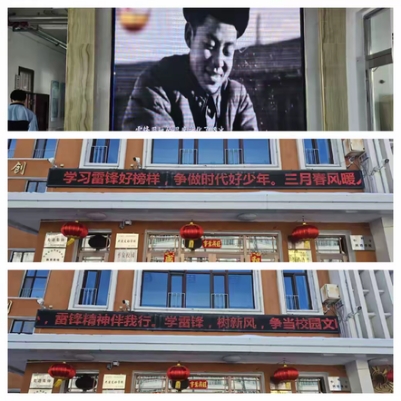 学校充分盘活各类校园宣传阵地,全方位营造学雷锋、践初心的浓厚德育氛围。教学楼上方LED显示屏循环滚动播放学雷锋主题宣传标语,字字句句传递榜样力量,让雷锋精神浸润校园每一处角落;教学楼大厅大屏全天候播放雷锋先进事迹与志愿服务宣传片,以鲜活生动的影像资料,带领同学们重温雷锋故事,感悟精神内核,在潜移默化中汲取奋进动力,树立向善向美的价值追求。