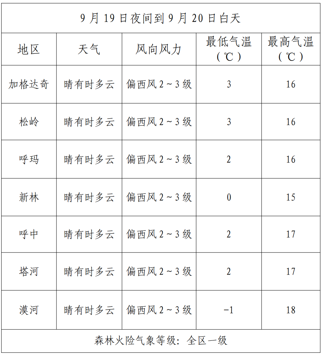 9月19日夜间到9月20日白天全区天气与森林火险预报