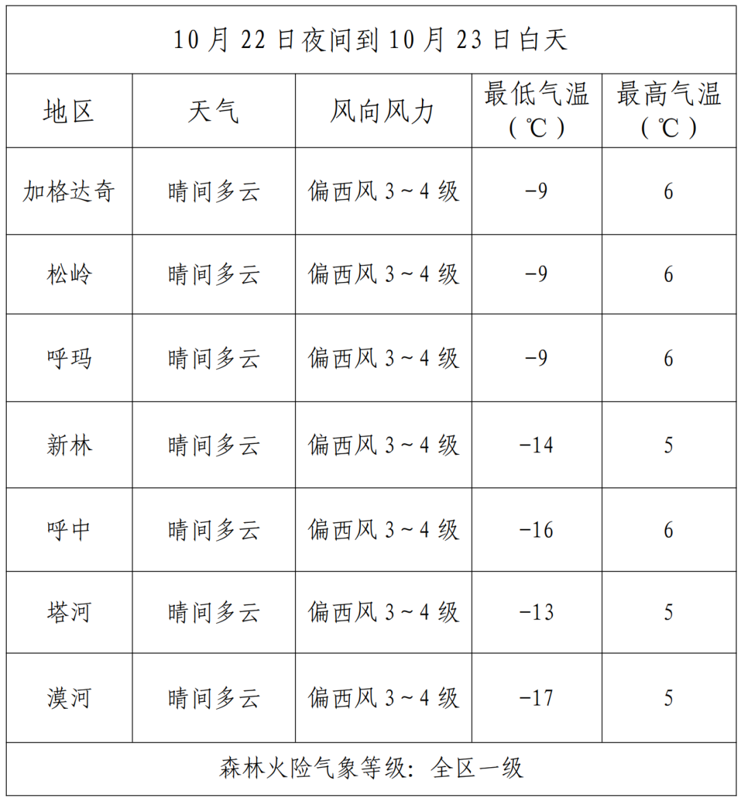 10月22日夜间到10月23日白天全区天气与森林火险预报