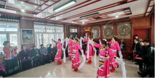 活动现场,老人们欢聚一堂。夕阳美舞蹈队带来的藏族舞蹈《吉祥欢歌》率先点燃热情,演员们带着饱满的精神状态登台,经典红歌《南泥湾》旋律婉转,唤起在场老人的时代记忆;《歌唱祖国》歌声铿锵有力,传递出深厚的爱国情怀;《毛主席来到咱农庄》节奏明快,让红色精神在歌声中传承。台下掌声与喝彩声接连不断。