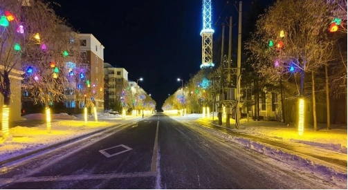 夜幕降临,道路两侧的福袋灯、中国结、满天星灯等同时点亮,整条大街流光溢彩。这些彩灯不仅照亮了城市街道,更映照出呼玛人民安居乐业、蓬勃向上的精神风貌,展现出县城繁荣发展的新气象。