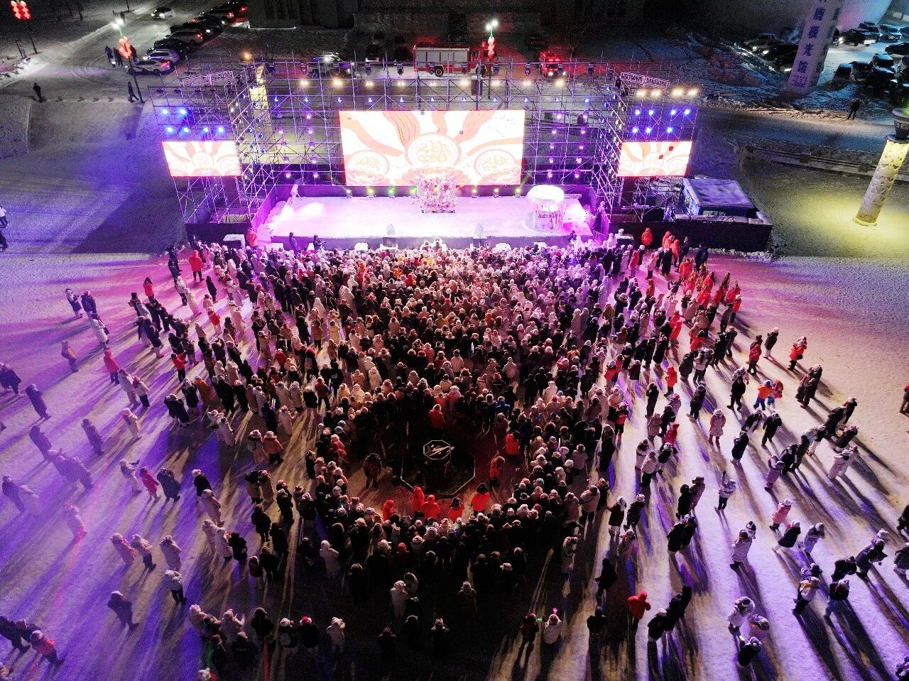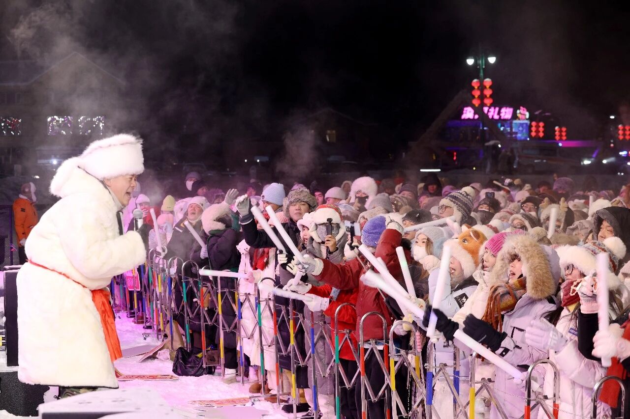 潮流与民俗的碰撞让跨年夜更具看点,《泼洒梦想》《要爱你就来》等歌舞表演点燃全场热情,荧光棒点亮夜空。随后,《小拜年》等东北二人转经典选段轮番登场,演员们手持手绢、扇子载歌载舞,现场欢声笑语弥漫。“第一次在这么冷的地方跨年,热情可以把整个场子都点燃。”来自山东的游客陈佳欣兴奋地说。