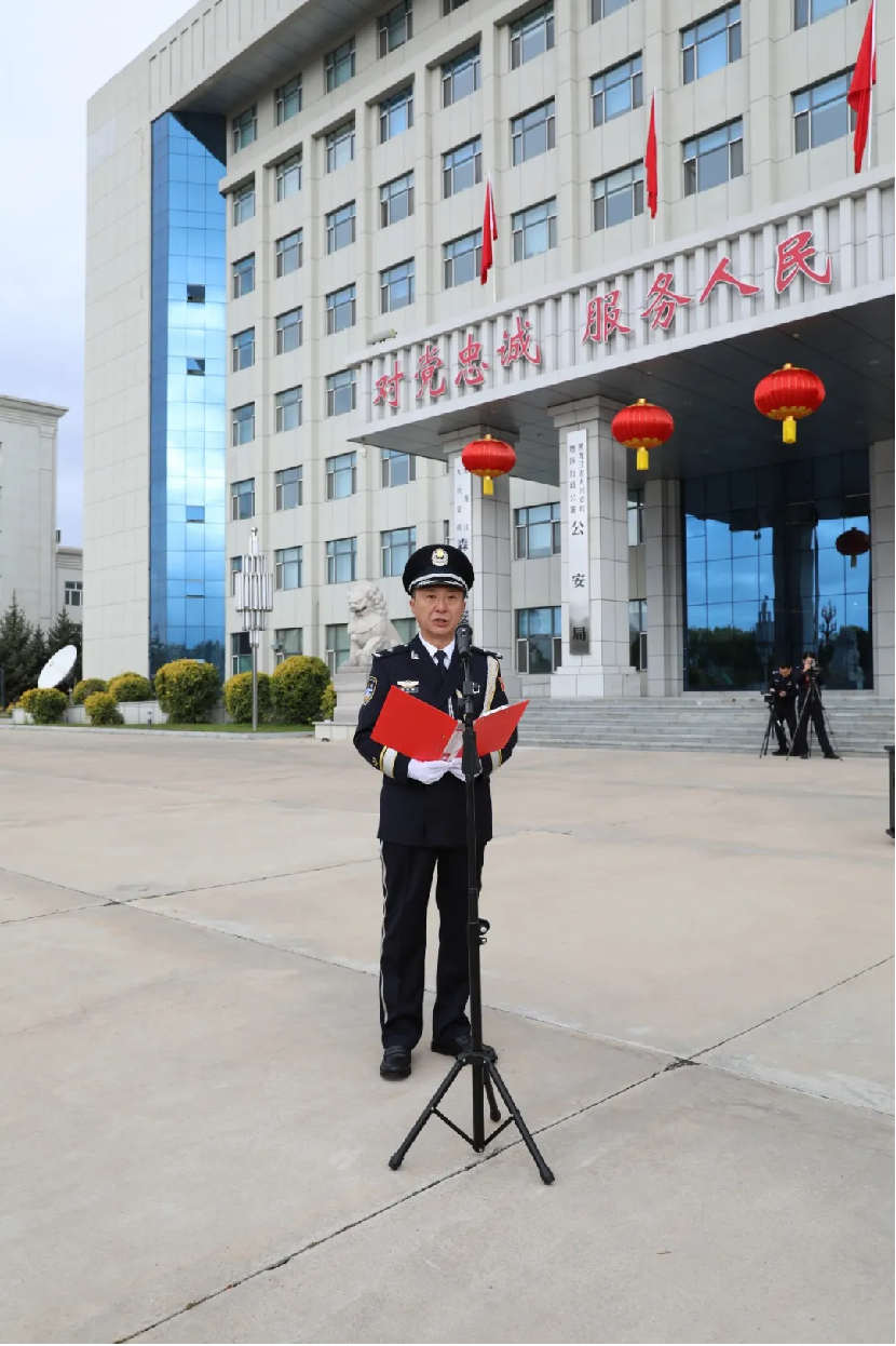 行署副专员、地区公安局党委书记、局长葛洪海出席活动并致辞,地区公安局党委委员、政治部主任张平峰主持仪式,地区公安局副局长于亚臣领誓《公安机关人民警察誓词》。