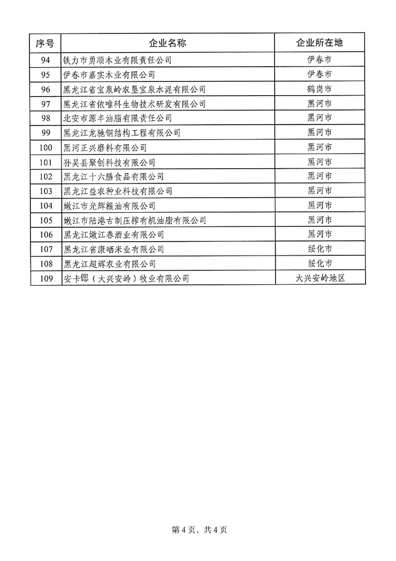 按照《黑龙江省工业和信息化厅关于组织开展2025年黑龙江省创新型中小企业评价和专精特新中小企业认定(复核)工作的通知》(黑工信企业发〔2025〕30号)要求,依据《优质中小企业梯度培育管理暂行办法》(工信部企业〔2022〕63号)有关规定,经自愿申报,市(地)推荐,专家评审,信用核查,公示等程序,并经省工信厅2026年第1次厅长办公会议审议通过,确定评价哈尔滨中腾肉制品加工有限公司等109户企业为2025年黑龙江省第四批创新型中小企业(详见附件),有效期至2029年1月4日,现予以公布。