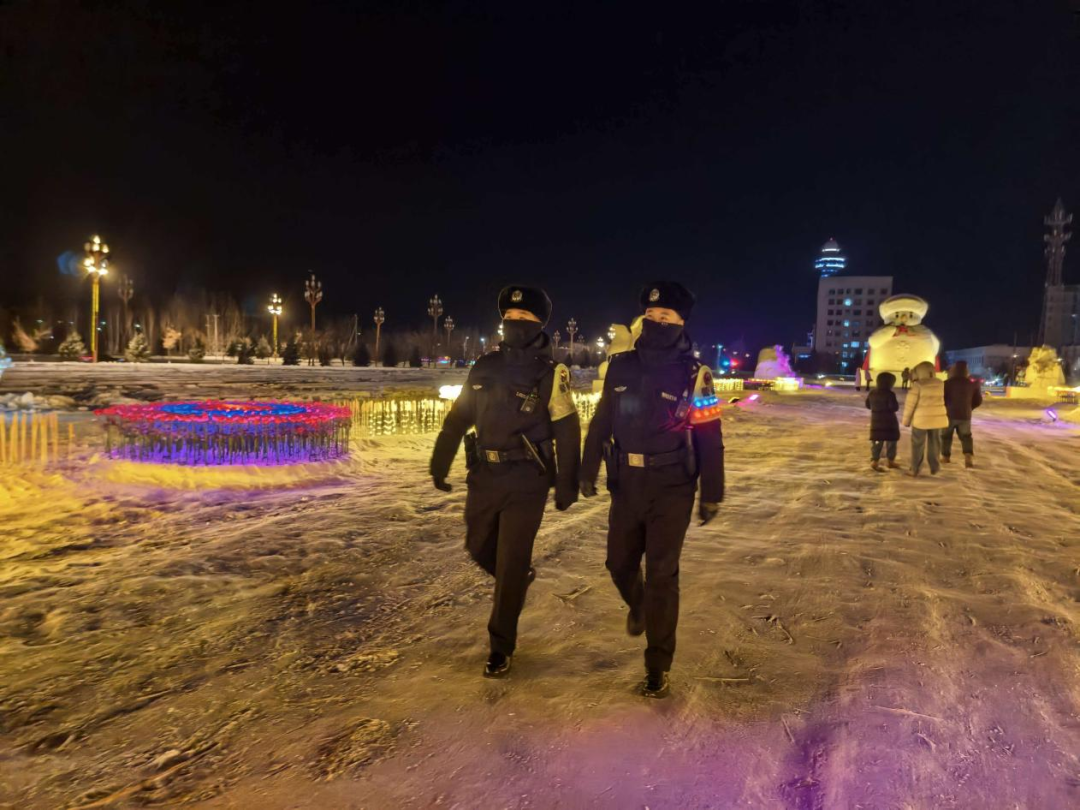 雪夜虽寒,警心滚烫。加区公安局光明派出所将始终坚守岗位,以“群众安全无小事”的责任担当,常态化开展雪雕周边及广场全域夜间巡逻防控,用坚守与守护,为市民和游客营造安全、有序、祥和的游玩环境,让平安底色在冰雪美景中愈发鲜亮!