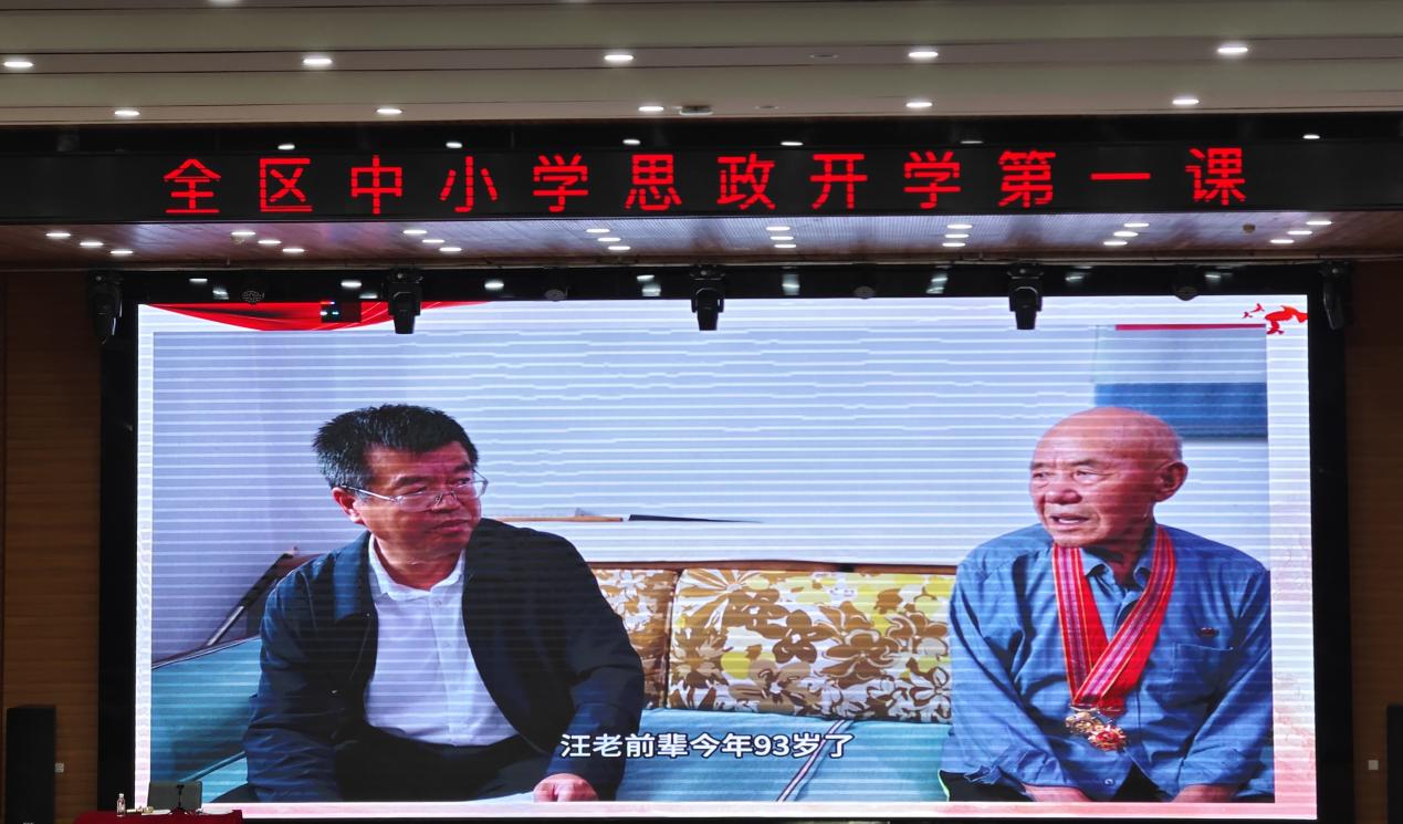 此次思政课特别专访了93岁抗美援朝老兵汪飞虎,他通过视频讲述了自己1953年在朝鲜战场荣立三等功的经历,讲述在那个艰难而光荣的年代,一位青年战士是如何义无反顾、肩负使命,用青春和热血守护传承那份永不褪色的精神力量。老兵的故事成为鲜活教材,让永不褪色的精神在代代相传中照亮前路。