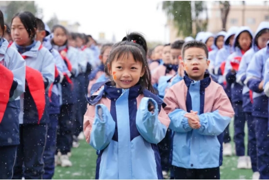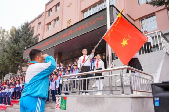 纷飞的雪花映衬着鲜艳的队旗,激昂的队歌回荡在校园上空。日前,加格达奇区育才小学的操场化作红色海洋,“强国复兴有我争当新时代好少年”主题队日活动在此举行,共同庆祝中国少年先锋队建队76周年。