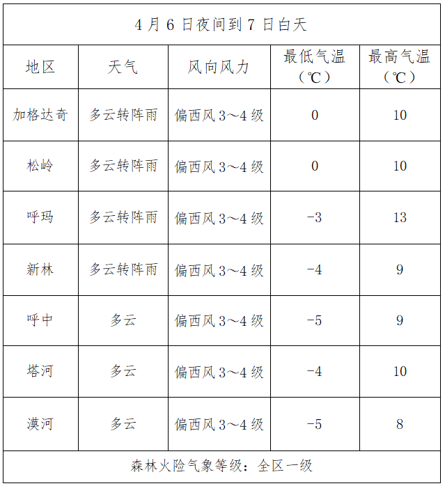 4月6日夜间到4月7日白天全区天气与森林火险预报
