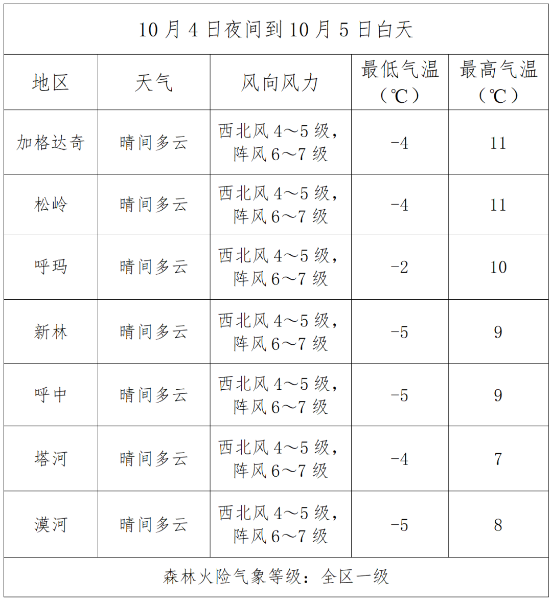 10月4日夜间到10月5日白天全区天气与森林火险预报