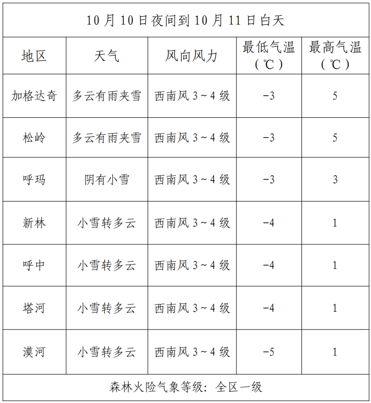 10月10日夜间到10月11日白天全区天气与森林火险预报